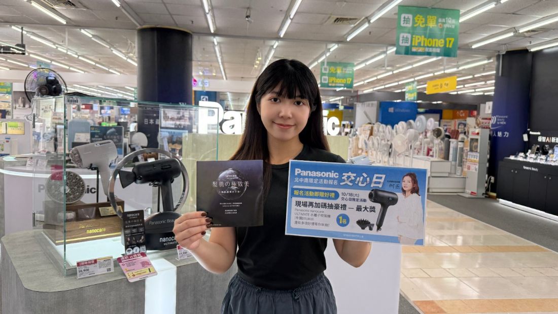為鼓勵民眾踴躍體驗,民眾可以Panasonic家電專區為背景,並拍照上傳到燦坤網路平台、標記活動主題,分享產品體驗經驗,即可獲得精美小型化妝包乙個(顏色隨機),現場再享加碼抽豪禮,幸運的民眾,還有機會將最大獎市值15,900元的Panasonic nanocare ULTIMATE 水離子吹風機帶回家(抽1名)。