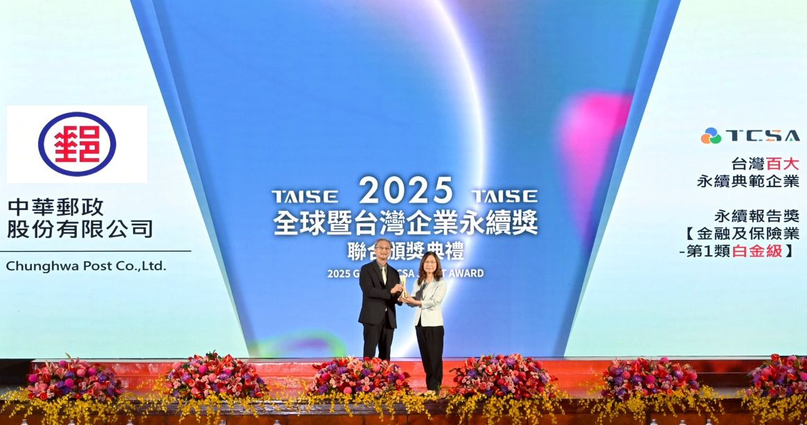 中華郵政公司積極推動企業永續發展,成果再獲肯定,於財團法人台灣永續能源研究基金會舉辦之「2025年第十八屆台灣企業永續獎」評選,榮獲「台灣百大永續典範企業獎」及「企業永續報告–白金獎」雙獎殊榮,展現深耕環境永續、社會責任及公司治理的卓越表現與持續精進的決心。頒獎典禮於114年26日在台北圓山大飯店舉行,由永續長王婉如代表受獎。