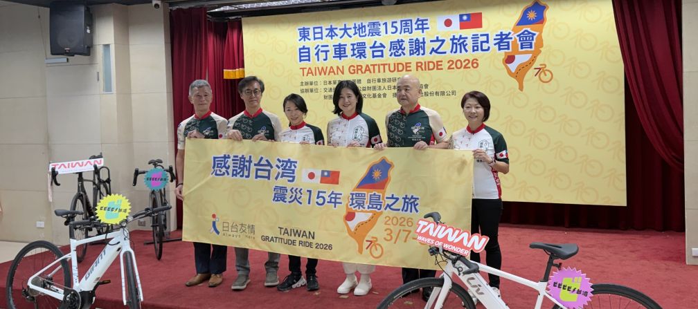2026年適逢東日本大地震15年,對台灣懷抱深厚感謝之情的日本單車愛好者與各界人士,發起「東日本大地震15年自行車環台感謝之旅」活動,預定於115年3月7日至3月15日舉辦。藉由自行車騎行環繞台灣全島,巡迴各地傳達對15年前台灣各界伸出溫暖之手的謝意。單車隊伍預定於115年3月7日從台北總統府出發,以順時針方向前往宜蘭、花蓮、台東、屏東、高雄、嘉義、台中、新竹等城市,透過長達9天900公里之環台感謝旅程,表達日本人的謝意,並藉此機會向日本社會推廣台灣單車環島的魅力與樂趣,促進日本民眾來台旅遊,也透過日本自行車車隊騎乘與台灣民眾互動交流。