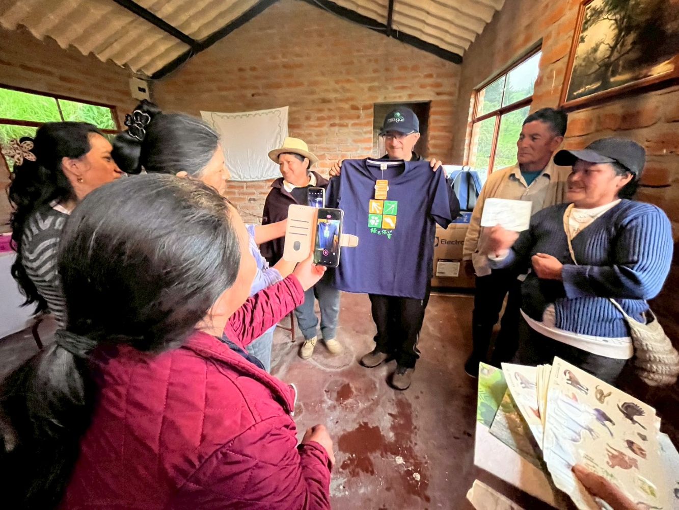 圖說:透過綠色保育Tshirt上的腳印Logo,讓厄瓜多友人們認識綠色保育提倡人與動物和諧共存的精神。(圖片提供:慈心基金會)。