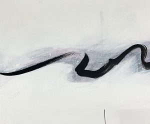 他的創作方法本身即是一種哲學。隱隱透出的線條、若有若無的色彩層次,暗示著畫面底下曾經發生過什麼。那些精簡的筆觸、濃烈的顏色,都還在。只是被白色一層層覆蓋,最終留在表面的線條,是歷經取捨之後最核心的本質。如同大道至簡,從繁複走向澄澈,需要勇氣,也需要耐心。