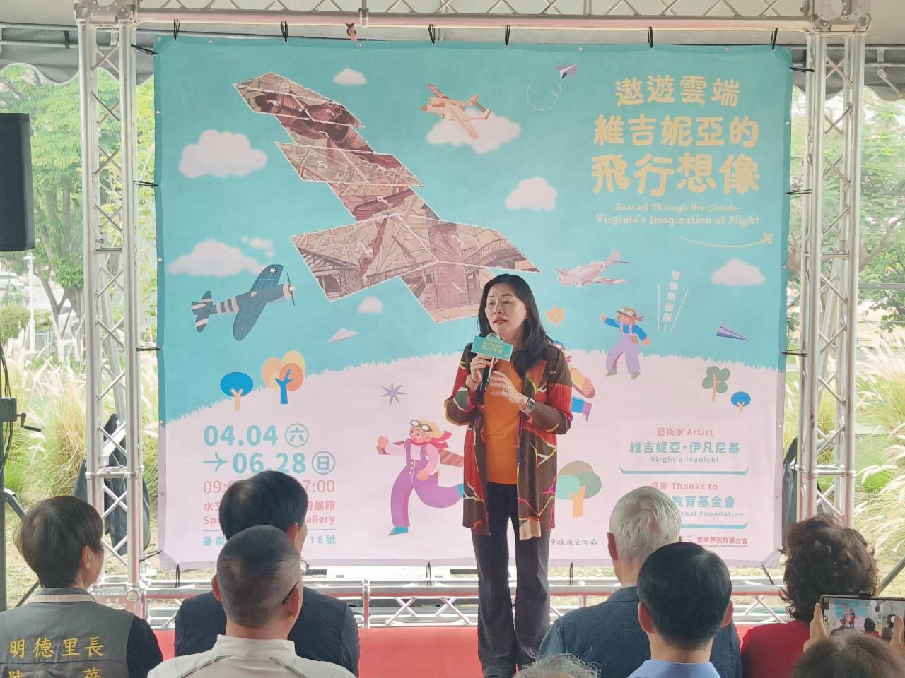 為慶祝4月26日世界飛行員日(World Pilots’ Day),文化局攜手富樂夢教育基金會,於水交社文化園區舉辦「遨遊雲端—維吉妮亞的飛行想像」畫展,展出基金會典藏的加拿大藝術家維吉妮亞・伊凡尼基(Virginia Ivanicki)飛機主題系列畫作,除了呼應水交社空軍眷村的歷史背景,也透過畫展向翱翔天際的英勇飛行員致敬。